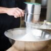 The macaronage technique is crucial. Our chefs carefully fold the batter until it reaches the perfect smooth and glossy texture.